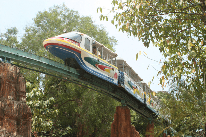 Một trò chơi cực hấp dẫn mà khi đến đây bạn không nên bỏ lỡ chính là Monorail. Đây còn được gọi là hệ thống tàu điện ngầm trên cao, rất hấp dẫn, giúp người chơi có thể chiêm ngưỡng toàn cảnh công viên xinh đẹp này.
