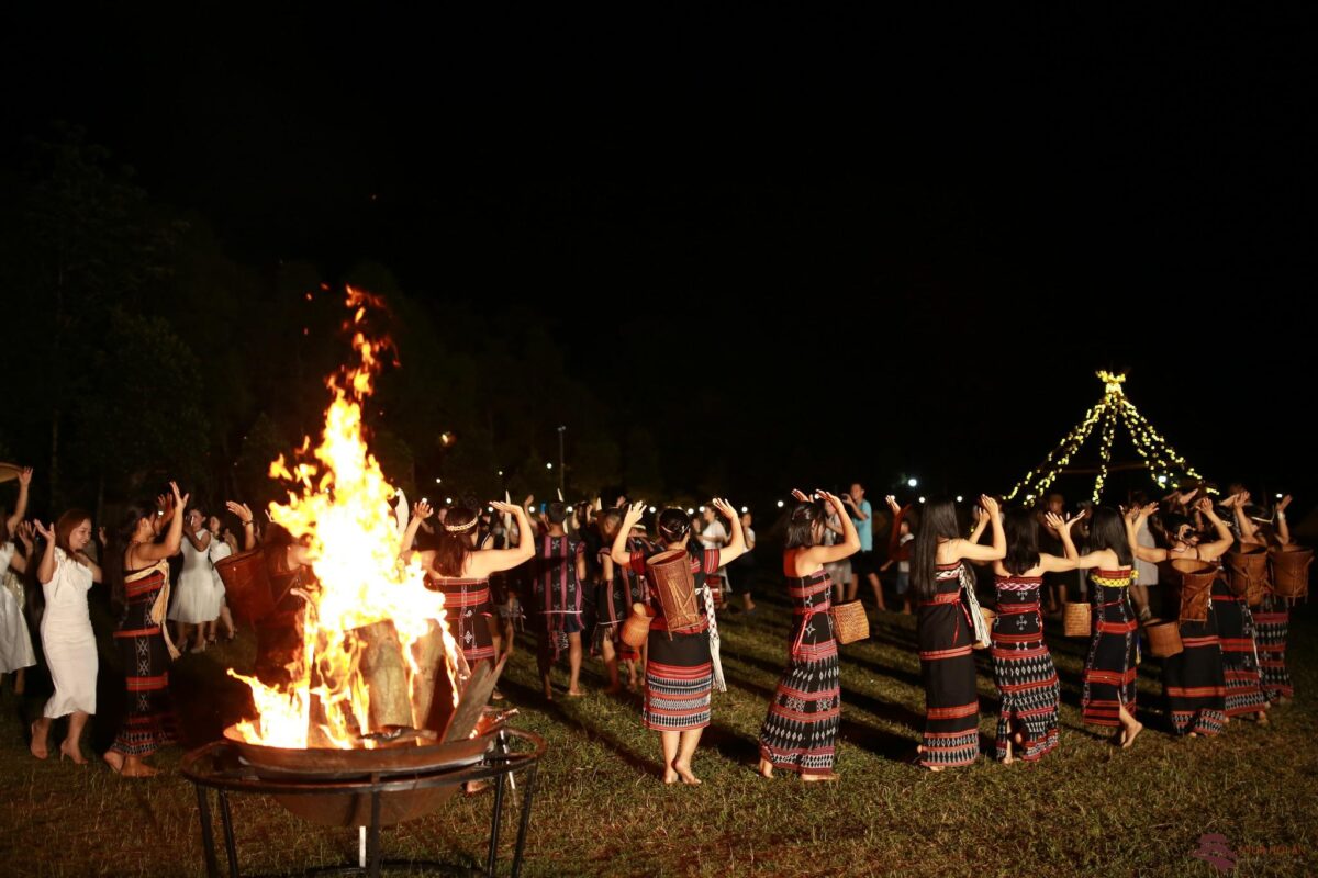 Đốt lửa trại chắc chắn là tiết mục không thể thiếu khi quyết định nghỉ dưỡng tại Làng Toom Sara khi du lịch Đà Nẵng. Thông thường, du khách khi đến nghỉ dưỡng sẽ ở trong những túp lều mà dân làng chuẩn bị sẵn. Vào mỗi tối sẽ có tiết mục đốt lửa trại, nhảy múa, vui chơi cùng nhau để có thể thay cho lời chào mừng của đồng bào Cơ Tu.